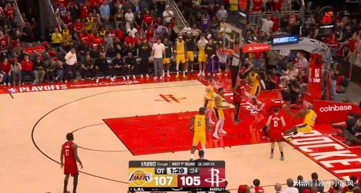 加时赛还剩下1分29秒时,裁判报告指出,詹姆斯飞身抢下防守篮板后踩线出界。不过该回合后续,火箭后卫谢泼德拿到了球权。